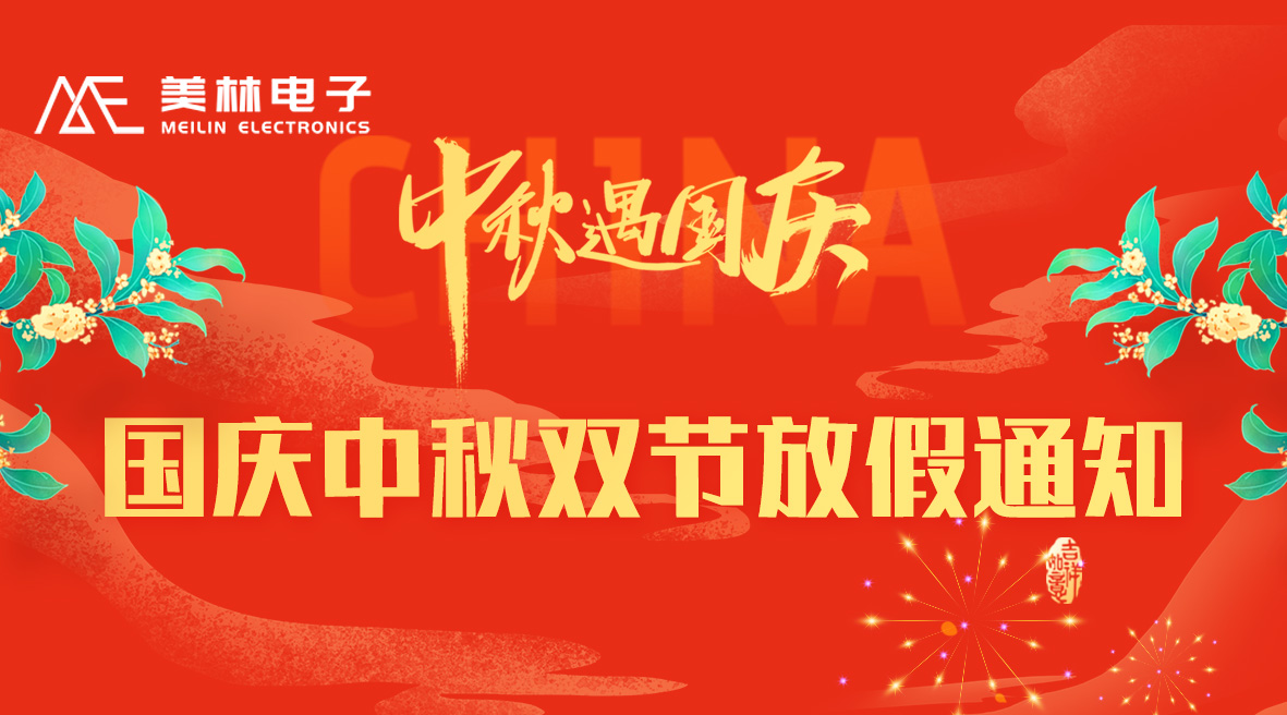 尊敬的各位客戶、各合作伙伴: 團(tuán)圓慶華誕,雙節(jié)共歡騰。國慶中秋雙節(jié)將至,根據(jù)國家有關(guān)規(guī)定結(jié)合公司實際,放假安排如下:10月1日至10月8日放假休息,共8天,10月9日(星期四)正常上班。 感謝您一如既往的信任和支持。美林電子祝您財源廣進(jìn),團(tuán)圓喜樂,闔家幸福,萬事如意!